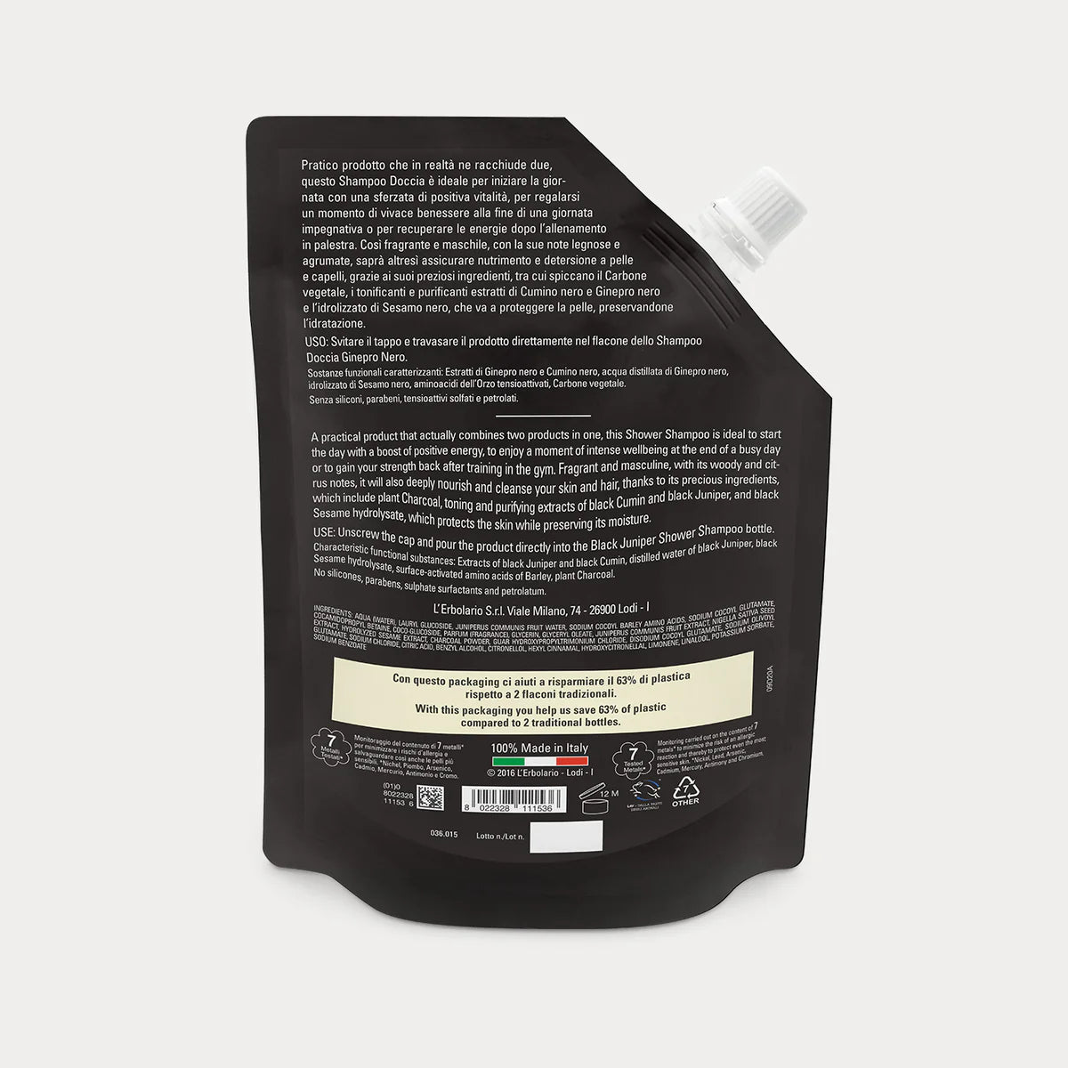 Shampoo Doccia ideale per iniziare la giornata con una sferzata di vitalità, per regalarsi un momento di vivace benessere alla fine di una giornata impegnativa o per recuperare le energie dopo l’allenamento in palestra. Così fragrante e maschile, con la sue note legnose e agrumate, saprà altresì assicurare nutrimento e detersione a pelle e capelli, grazie ai suoi preziosi ingredienti, tra cui spiccano il Carbone vegetale, i tonificanti e purificanti estratti di Cumino nero e Ginepro nero e l’idrolizzato di Sesamo nero, che va a proteggere la pelle, preservandone l’idratazione.