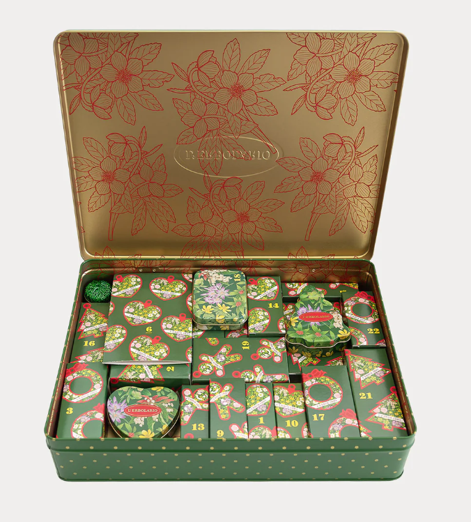 Vivi una magica attesa del Natale insieme al Calendario dell’Avvento 2025 L’Erbolario! 24 sorprese di bellezza ti aspettano all’interno della bellissima scatola in latta decorata: ogni giorno apri una delle scatoline e scopri un cosmetico selezionato tra i nostri prodotti bestseller e le ultime novità. I migliori trattamenti L’Erbolario ti aspettano in pratici formati per prendersi cura di viso, corpo e capelli.